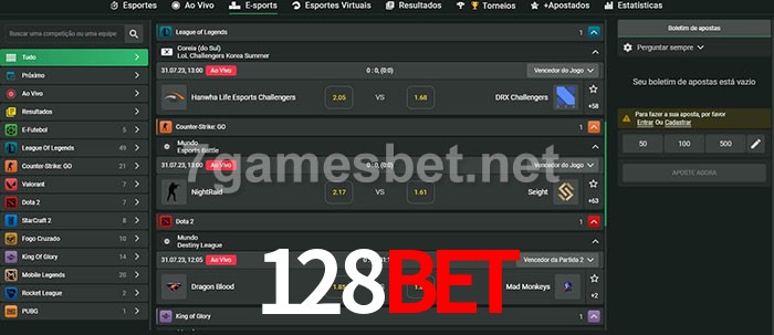 O 128bet oferece uma grande seleção de opções de apostas em e-sports com probabilidades competitivas